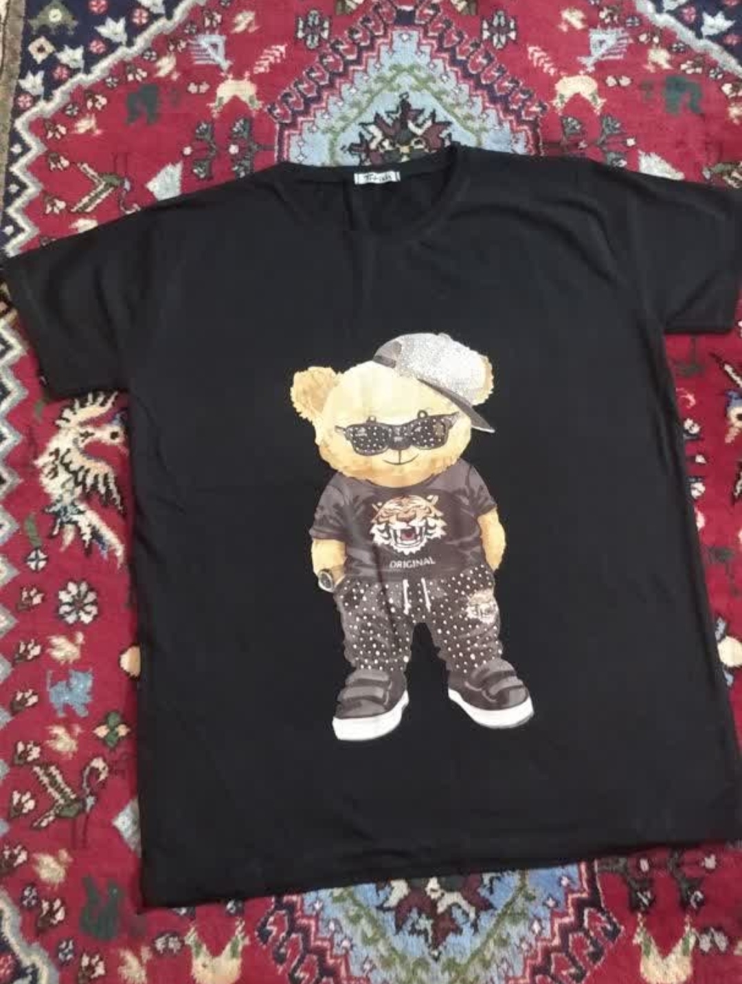 تیشرت دخترانه چاپ دار تک رنگ مشکی